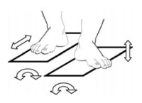 Im Unterschied zu den sinusoidalen zweidimensionalen Vibrationsgeräten sind seit einiger Zeit die SRT Zeptor®medical Geräte im Einsatz. Sie übertragen dreidimensionale Oszillationen im Sinne von stochastischen Resonanzvibrationen (zufällige Frequenzvibrationen und Harmonien) über zwei separate und unabhängige Fussplatten auf den menschlichen Körper (Abb. 1). Diese Geräte, arbeiten im tiefen Frequenzbereich (1-12Hz).